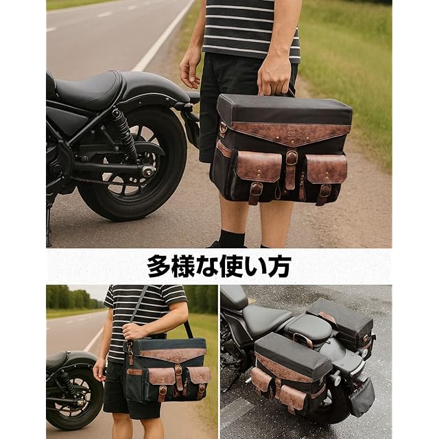 KEMIMOTO バイク サイドバッグ 左右セット サイドバック 36L大容量 ワックスキャンバス防水性高い生地 ツーリングバッグ KM1022