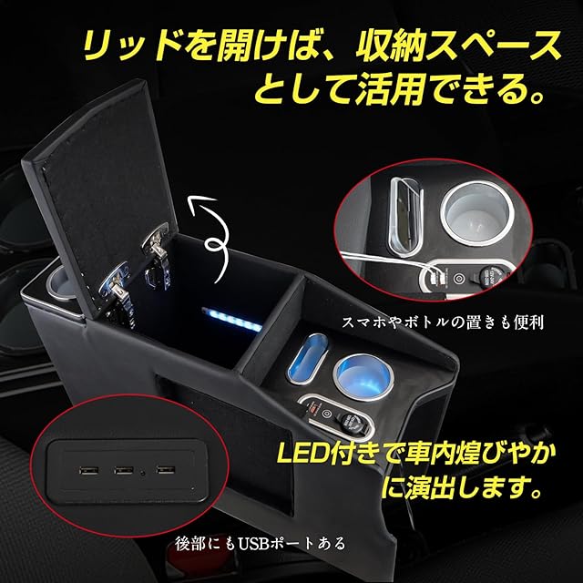 【収納力アップ】本コンソールボックスには、リッド(カバーぶた)がアームレストを兼用しているタイプです。リッドを開けば、貴重な収納スペースとして活用できます。車内の機能性が大幅にアップする優れセンターコンソールです。※:走行時の振動などで蓋が閉まって挟まれる可能性があるので、コンソールボックスを開けたままにしないよう注意ください。