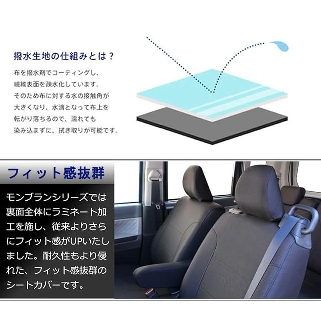 スペーシア・スペーシアカスタム専用シートカバー ブラック 3層構造 撥水加工 モンブラン (スペーシア)