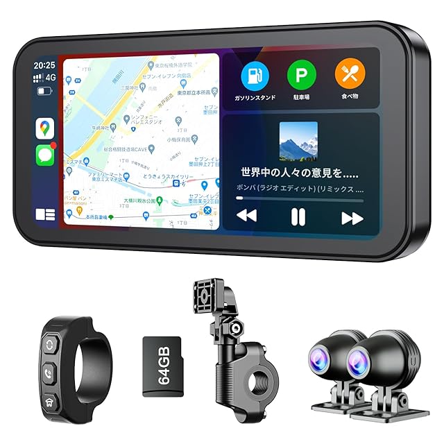 Changer バイクナビ バイク用ドライブレコーダー 6.25インチ液晶タッチパネル バイクドラレコ WiFi搭載 スマホ連動 Carplay/Android Auto対応 環境に応じて明るさ調整 IPX7防水防塵 耐熱耐久耐衝撃性 エンジン連動 煽り運転防止 音楽/通話/ナビ対応 インカム/BTイヤホン対応 取付ホルダー/有線リモコン 技適取得済み