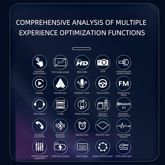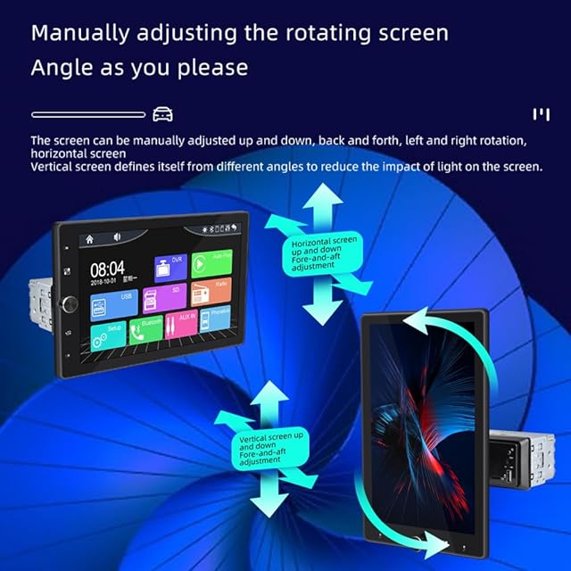 回転した画面を手動で調整します。 画面は手動で上下、左右、前後に調整できます。 必要に応じて調整して、画面への光の影響を軽減します。BluetoothとFM:カーオーディオ内蔵Bluetoothは、Bluetoothハンズフリー通話、Bluetooth音楽再生、電話帳の自動読み込みをサポートしています。 FM ラジオには 18 のプリセット局があり、お気に入りの局を保存していつでもニュース、音楽、番組を聴くことができます。