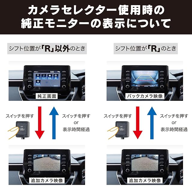 ・フロントカメラの映像にスイッチで手動切替! スイッチ操作でフロントカメラの映像に切り替わります。