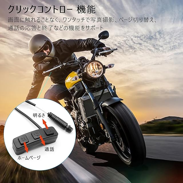 ★【2024アップグレード】:1. 防水・防塵のアップグレード:ドライブレコーダースクリーンと前後カメラは、IP67の防水等級を使用して、IP65に比べて、粉塵の侵入を防ぐだけでなく、水中でも正常に動作します。一方、IP65の製品は主に水滴や低圧の水の噴射を防ぐことに重点を置いており、長時間の雨中や屋外環境での使用には適していません。 2. 有線リモコンの追加、クリックコントロー機能あり:バイクライディング中に、コントローラを使用して写真や画面を切り替えたり、モニターをオン/オフしたり、着信を受けたり拒否したりすることができます。安全で便利なドライビング体験を提供します。 3. 前後カメラのアップグレード:メモリのアップグレード、CLASS10 U1メモリカードの使用、最大256GBのストレージをサポート、デフォルトでの起動時の録画設定、秒数の欠落なし、1080P H.264ビデオ、2チャンネル録画、個別に保存可能4、自動明るさ:内蔵光センサーが周囲の明るさを自動的に検出し、画面の明るさを調整して快適性を向上させます。光の変化する環境では、視認性に合わせて明るさを正確に調整します