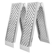 使用上のご注意: バイクラダーレールの展開サイズは150cm(長さ)*23cm(幅)*3.5cm(高さ)で、折り畳みサイズは77cm(長さ)*23cm(幅)*12cm(高さ)です。推薦使用高さは30-42.5cmです。高強度アルミ素材で、軽量(約8.3kg/2本)ながら耐荷重は400kg(2本)です。