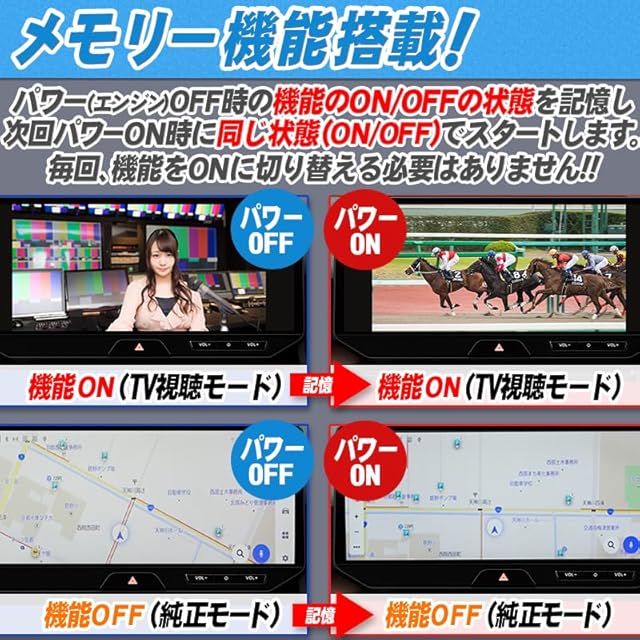 走行中でもTV視聴が可能に。 走行中のテレビやDVD視聴、ナビ操作が可能になり、移動中も快適に過ごせます。