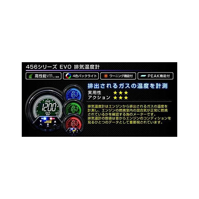 オートゲージ 排気温度計 60mm 追加メーター 日本製モーター 4色バックライト 456シリーズ