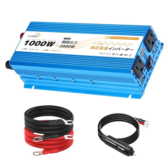 リョクエン(LVYUAN)インバーター 24v 100v 正弦波 1000W 【2025年新登場】【正規品】実出力 周波数60HZ 定格出力 1000ワット 瞬間最大出力(1S)2000W DC12V TO AC105V±5V変換 スマート保護機能付き 太陽光発電 地震 防災用品 自動車 船 停電の対策 台風停電用 ミニ発電施設