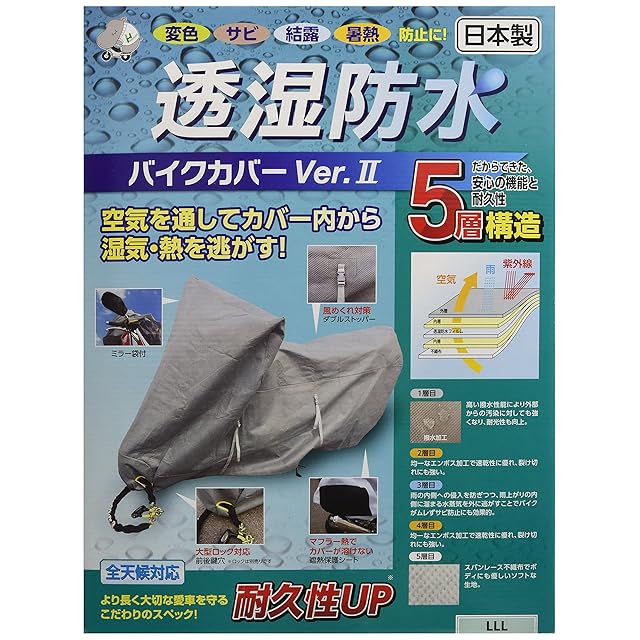 [平山産業] 透湿防水バイクカバーVer2 グレー 3L 706526