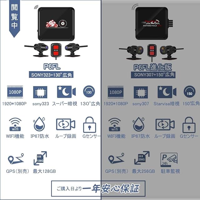 VSYSTO ドライブレコーダー バイク 前後カメラ 防水 1080P 200万画素 HDR スーパー暗視 130°広角 小型 ドラレコ バイク エンジン連動 ループ録画 Gセンサー 緊急録画 スマホ連携 煽り運転防止 USB給電 オートバイドラレコ 日本語説明書 B6QL
