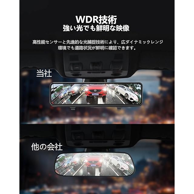 【反射防止、過剰露出なし、WDR機能搭載】INSEETECHのミラー型ドライブレコーダーは、反射防止技術、自動露出調整、そしてWDR機能を搭載。これにより、明るい日差しや暗い夜間運転でも、シャープでバランスの取れた映像が確保されます。WDR機能は、高コントラストな環境で露出を調整し、クリアな映像を提供。どんな状況でも、視認性を高め、重要な瞬間をしっかり捉えます!さらに、2022年最新のSuperView AI画像処理技術により、夜間や雨天時でも明るく鮮明な録画が可能です