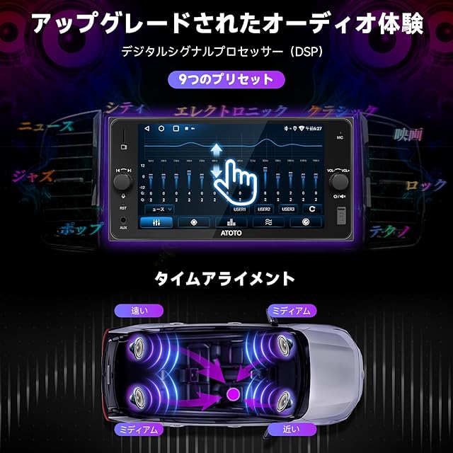 オーディオ品質の体感を強化:A5 Liteは、内蔵アンプ(M-A-X 4 x 45 W, RMS 4 x 24 W)を搭載し、24バンドEQと9つのプリセットにより、デジタルシグナルプロセッサー(DSP)でオーディオをカスタマイズできます