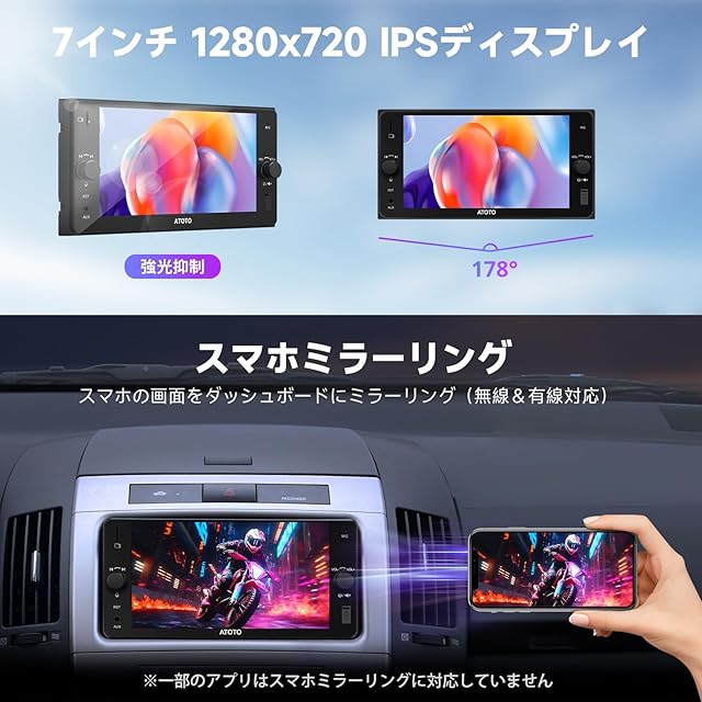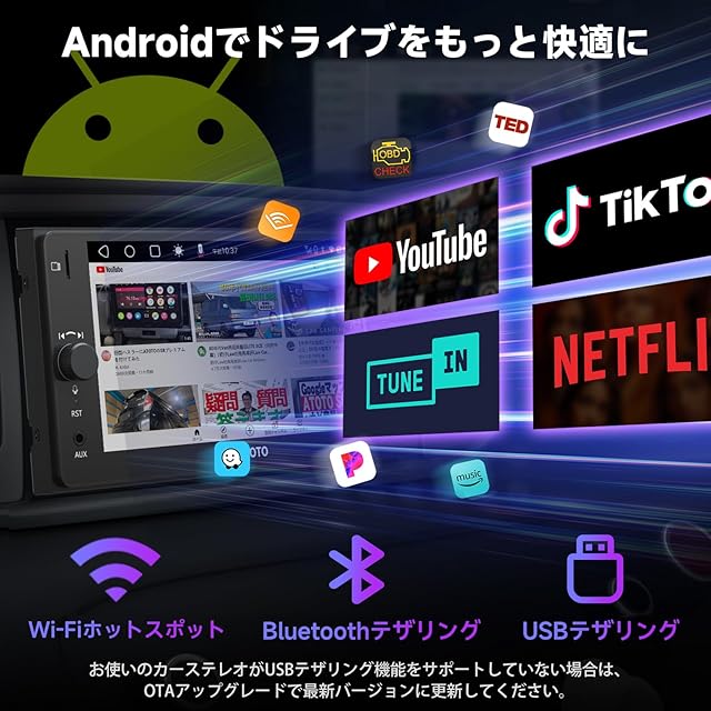 A5Lトヨタ7インチ 2DIN Androidナビ ディスプレイオーディオ、ワイヤレスCarPlayとAndroid Auto、WiFi 対応/Bluetooth/USB テザリング、GPSトラッキング、ミラーリンク、内蔵24 EQ DSP、Chat-GPT、2分割画面、2G+32G、FM/AM、車でネットフリックス見る/youtube 「技適取得済み品」