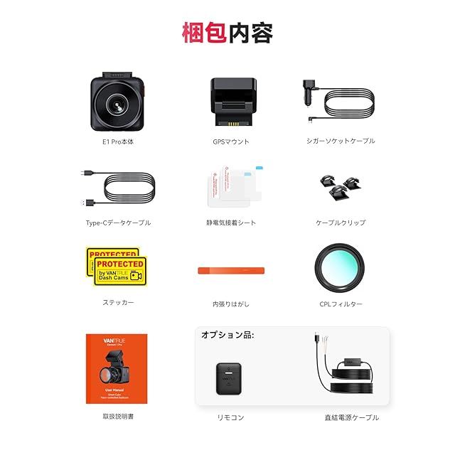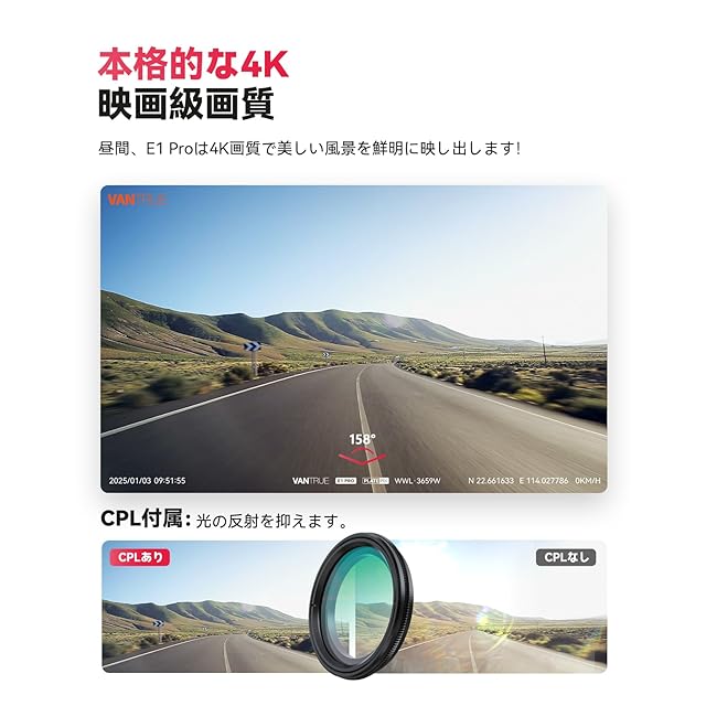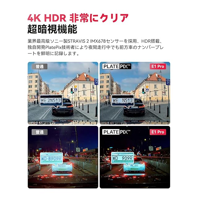 VANTRUE ドライブレコーダー 4K UHD 800万画素 STARVIS 2 IMX678 小型 ドラレコ WiFi付き HDR/GPS搭載 超暗視機能 ナンバー認識強化版 24時間駐車監視 158°広角 音声制御 上下反転機能 ダッシュボード取付可 OTAアップデート Gセンサー 衝突録画 取付簡単 ノイズ対策済 最大1TBメモリー対応 E1 Pro