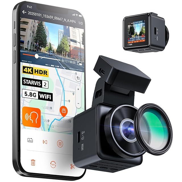 【4K UHD高画質 HDR 超強暗視機能 158度超広角 】業界最強のソニーIMX678 STARVIS 2イメージセンサーを搭載し、高精細で滑らかな4K(3840×2160P)高画質を実現します。先端の画像ノイズリダクション技術&適切な後処理技術による、撮影してきた映像をさらに高感度化しつつ高画質を担保ながら現場での画面を最大の忠実に再現できます。前方車のナンバープレートと両側の看板の文字を録画し、大事な証拠映像を鮮明に記録します。HDR機能搭載により、弱い光の環境では自動的に補光し、強い光では過曝を抑制して夜間の移動もクリアに可視化し、暗い夜道も明るく記録できます。158度超広角レンズを採用、前方幅広いエリアをカバーし両側の出来事もきちんと録画します。