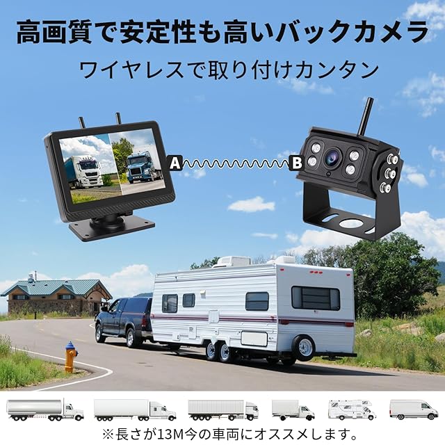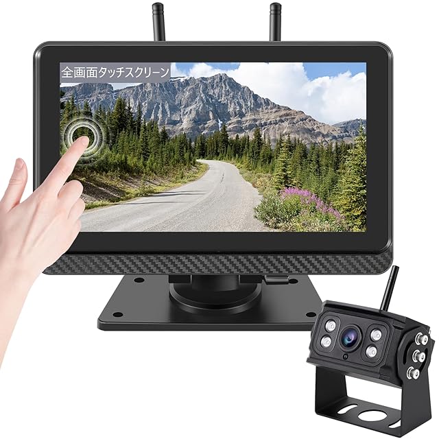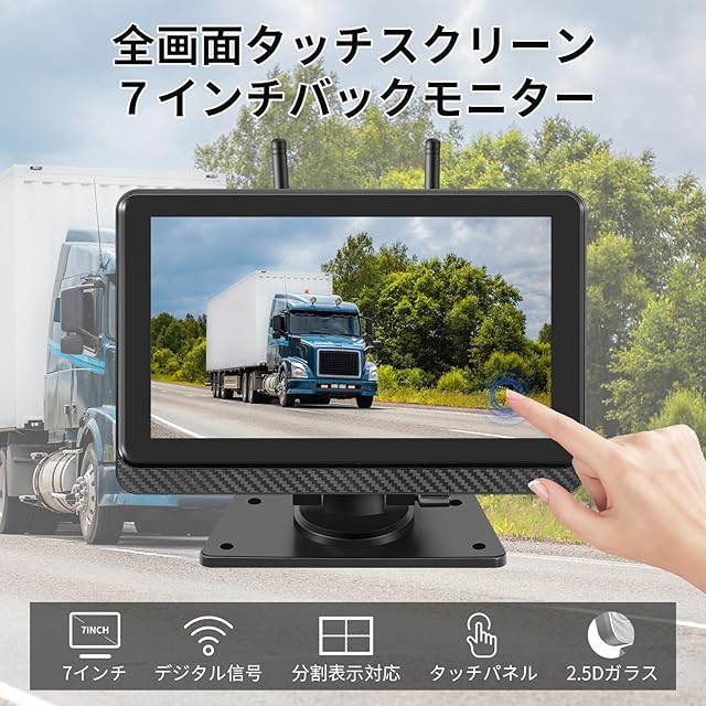 2倍ズーム ワイヤレスバックカメラモニターセット 7インチバックモニター ワイヤレスバックカメラ24v IPS液晶 全画面タッチスクリーン デジタル信号 画面分割/反転表示 DC12v/24v トラック対応 録画機能付 2年メーカー保証