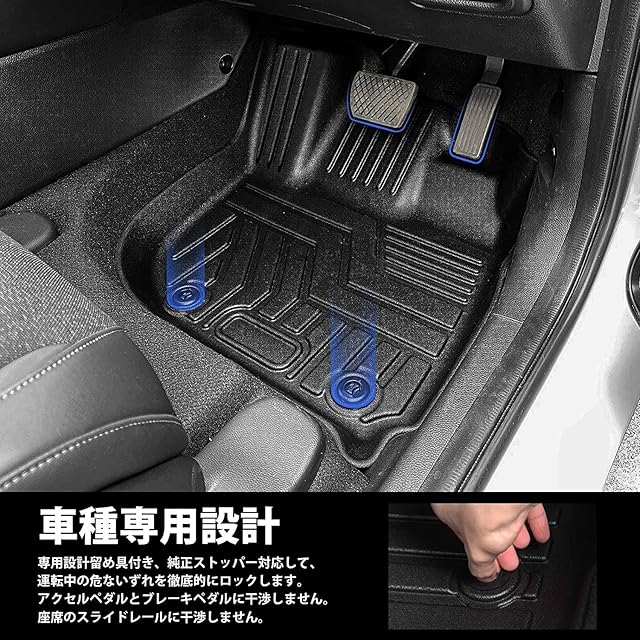 【専用留め具付き・取付簡単】専用設計留め具付き、抜群フィッティングします。アクセルペダルとブレーキペダルに干渉しません。マット裏側にズレ防止加工済み、フロアマットを固定し、運転の安全性を高める!脱着も簡単にできるし、ネジや両面テープなどは要らない取付を採用、到着したすぐに取付できます。