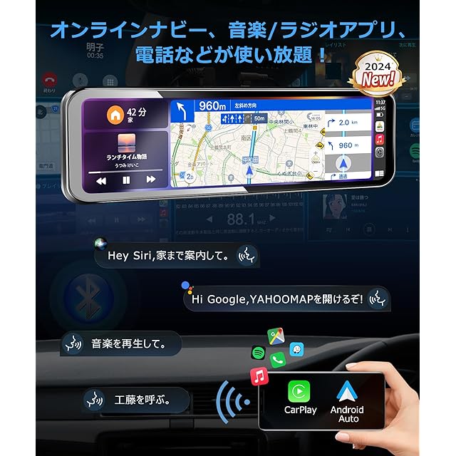 ✨【2024年新登場!ワイヤレスCarPlay・Android Auto搭載デジタルインナーミラー】古いカーナビの地図更新や精度は大きな悩んでいましょうか?本製品はワイヤレスCarPlay/Android Autoに対応し、地図アプリや音楽、通話機能を簡単に操作可能。運転中も視線を大きく逸らすことなく、安全にスマホ機能を利用できます。【Siri・Googleアシスタント対応】ハンズフリーで最新の交通状況やマップアプリ、音楽などを簡単に操作できるため、安全運転に集中しつつ、スマートなドライブ体験が可能です。違反の心配もなく、安心して使用できます。【FM送信機能搭載】古い車でも配線の手間なく、FMトランスミッター機能を通じてスマホの音楽やナビの音声を車のスピーカーで楽しめます。紹介は下記のURLから。https://youtu.be/7NRQjCBzclM?si=O4Yy4UTFTkEHigiB