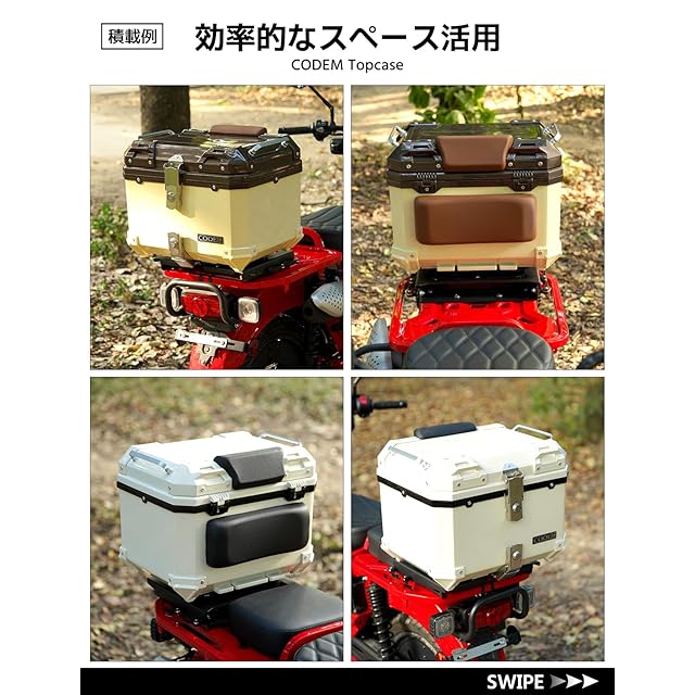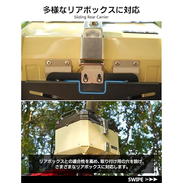 【耐荷重】20kg(静的状態)■純正キャリアには耐荷重の上限がありますので、規定の耐荷重を超えないようにしてください。【取り付け簡単】簡易な取付工具と日本語の説明書が付属しており、素人でも簡単に取り付けが可能です。グリルデザインを備えており、さまざまなタイプのリアボックスのベースに対応できます。CODEM、GIVI、SHADなど多様なブランドのリアボックスにも対応。