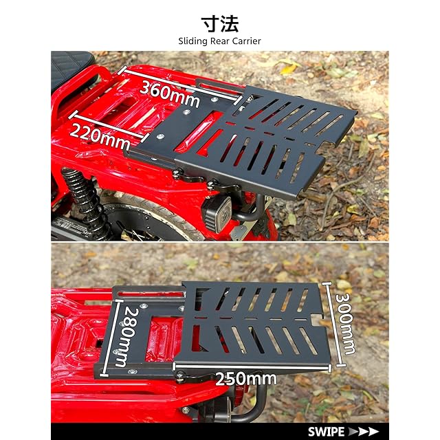 CODEM バイク スライドキャリア CT125 ハンターカブ (JA55/JA65) 専用 リアキャリア ステンレス製 2乗りに特化 延長キャリア 丈夫 リアボックス トップケース対応 バイク 荷台 ハンターカブ カスタムパーツ 外装 アクセサリー 日本語取扱説明書付き