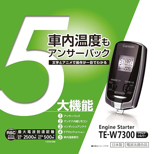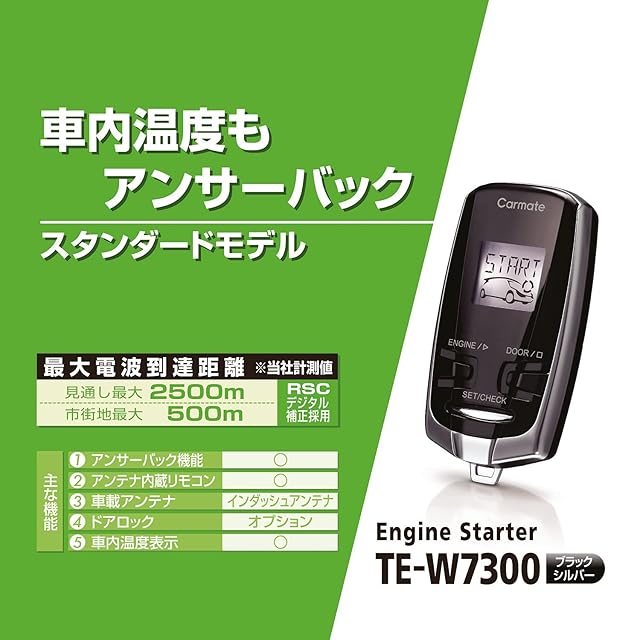 カーメイト(Carmate) エアコンスターター エンジンスターター キーシリンダー・スタートノブ車用 スタンダードモデル 最大電波到達見通し距離2,500m アンテナ内蔵液晶リモコン アンサーバック 乗車前エアコン ・ ヒーターの稼働 猛暑 雪 霜取 お取り付けには車種別ハーネスやオプションが必要です TE-W7300