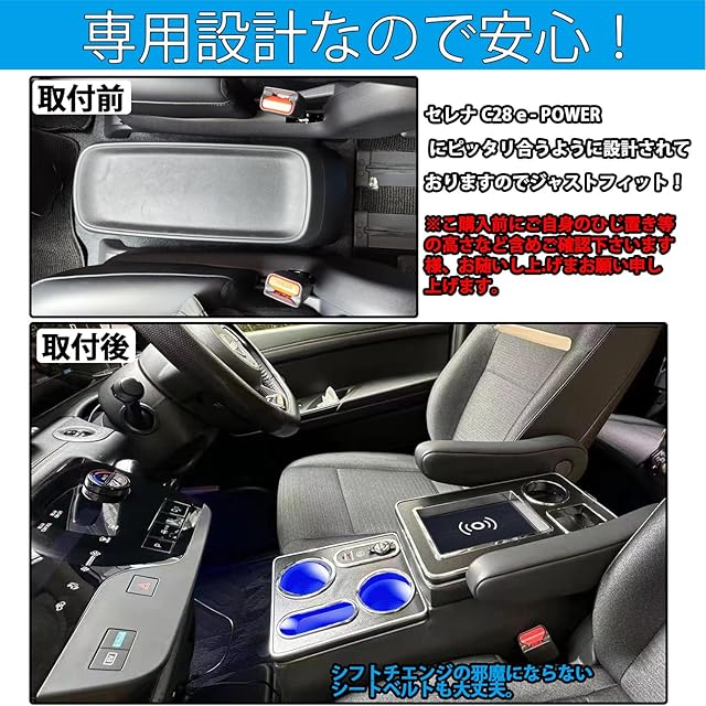 Sunyedaa セレナ c28 セレナ e-POWER センターコンソールボックス ワイヤレス充電機能付き アームレスト クッション 肘掛け 内装 SERENA ハイウェイスター