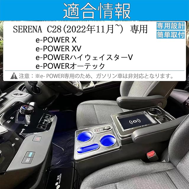 【適合車種】セレナC28e-POWER【年式:2022年11月~】 e-POWER X ,e-POWER XV, e-POWER ハイウェイスターV, e-POWER オーテックに適合。※こちらの商品はe-POWER専用でございます。ガソリン車にはお取り付けいただけません。 ※ルキシオン(LUXION)はセンターコンソールボックス(アームレスト付)を標準装備されておりますので、お取り付けいただけません。