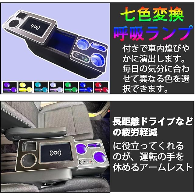 【RGB照明&安全運転】セレナc28 e-POWERコンソールボックスは、ボタン一つでお好みのカラーでライトアップする機能が搭載されています。毎日の気分に合わせて異なる色を選択でき、スイッチをクリックすることで点灯し、さらにクリックして色を変更できます。車内を煌びやかに演出します。スイッチをダブルクリックするとグラデーション効果が楽しめ、スイッチを5秒長押しすることで消灯します。さらに、c28 e-POWERアームレストのトップカバーを開けると、自動的に点灯し、夜間に物を探すのに非常に便利です。車内の灯を開けることは要らなく、運転の安全を確保する。車内も煌びやかに演出します。