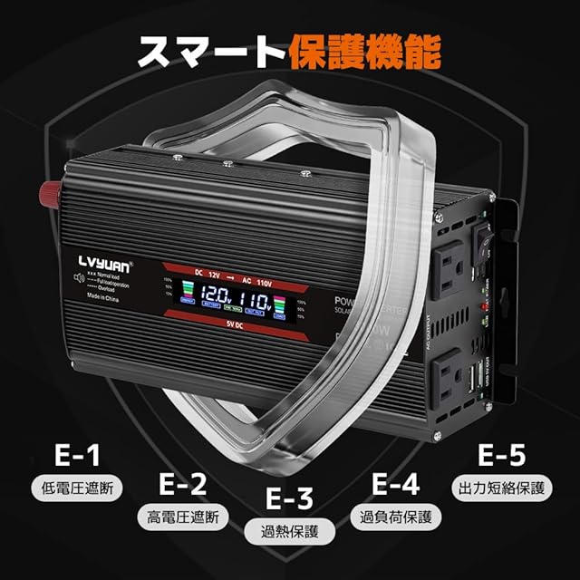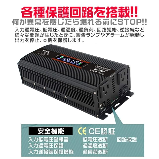 ✅【保護機能】入力低電圧警報・低電圧の遮断・過温度遮断・過負荷遮断・ 短絡遮断 ・入力過電圧保護・入力逆接続保護機能などの保護機能が搭載されております。また、本体内部に冷却ファンが搭載されており、使用中の設備過熱を防止します。