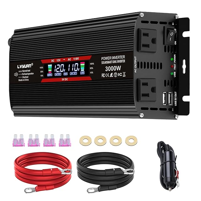 LVYUAN 12V/1500W(最大3000W) 車載インバーター DC12V(直流) AC100V(交流) 変換 カーインバーター 太陽光発電/自動車/船/車中泊/キャンプ/防災対応 緊急時で大活躍 停電の対策! 1年 無料交換+永久修理保証 日本語説明書付
