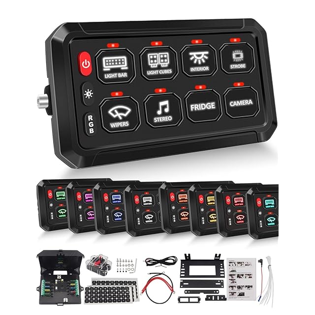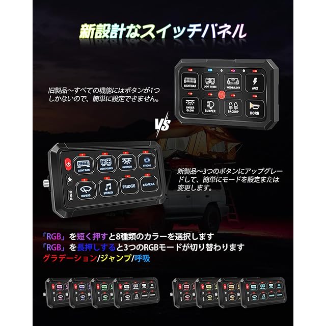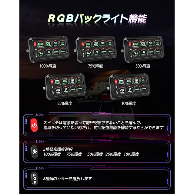 CHELHEAD スイッチパネル RGBバックライト 8ギャング 調光可能 ストロボタッチ 防水制御パネル汎用 回路制御 リレーシステムボックス UTVピックアップ ジープ 船用 SUVの互換性