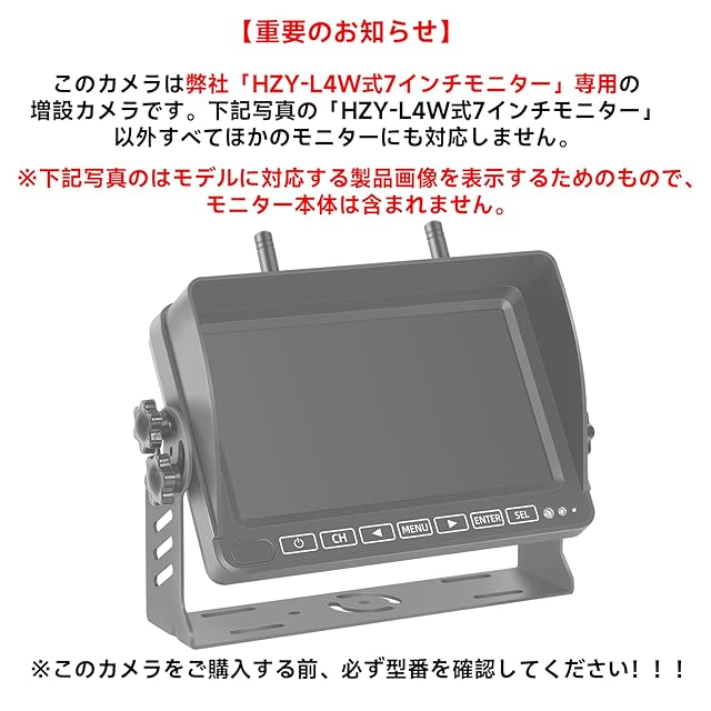 重要:このカメラは弊社のHZY-L4W専用の増設カメラなので、弊社のHZY-L4W式モニター以外に他の一切の製品にも対応しません。ご購入する前に、ぜひ型番をご確認ください。