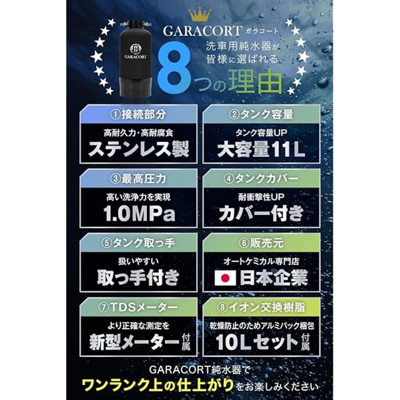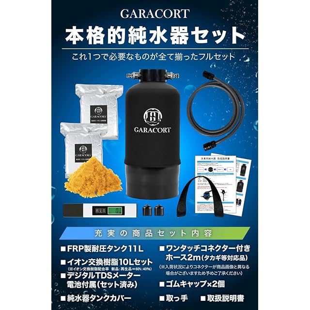 ガラコート 純水器 洗車用 【1年間製品保証】 11Lタンク 本格純水器 洗車 車 バイク 水垢 イオンデポジット ウォータースポット FRP製耐圧タンク1.0MPa TDSメーター イオン交換樹脂セット