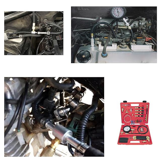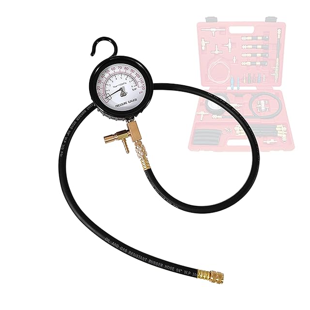 ZKTOOL アップグレードされた燃料噴射圧力テスターキット、燃料圧力計 ゲージ 0-120PSI、燃料噴射システムに適用、4つの燃料パイプクイックコネクタが装備