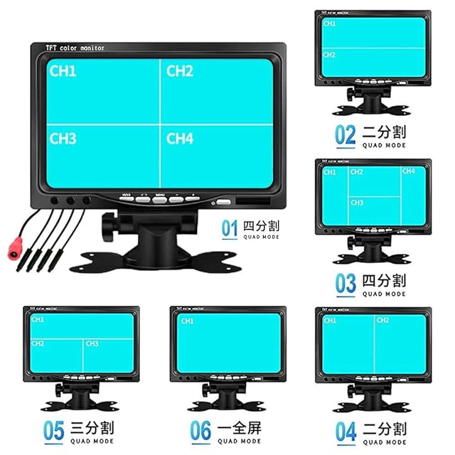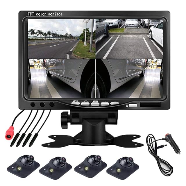 【最新改良版4画面分割表示対応】高画質の映像出力が可能な7 インチ モニター、カメラ4個搭載、車の前後また側面に取り付けられることが可能。見えない死角の確認に最適です。モニター液晶:7inch TFT LCD 高解像度:800*480*RGB、1024*600*RGB(最大)アスペクト比 : 16:10、コントラスト:800:1、 ビデオシステム:PAL/ NTSC 自動的に切り替える。