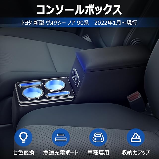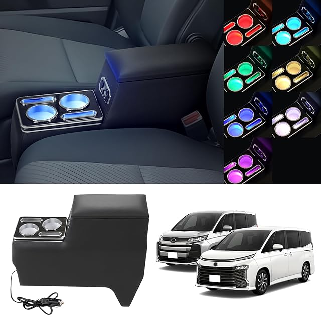 LIMSTYLE 新型 ヴォクシー ノア 90系 コンソールボックス VOXY NOAH 4代目 R90W アームレスト 肘置き 急速充電 Type-C QC3.0 USBポート 呼吸ランプ 7色変換 ヒューズ線 ハイブリッド 足踏み式サイドブレーキ車用 多機能 ドリンクホルダー カップホルダー 内装パーツ 大容量収納 (ブラック)