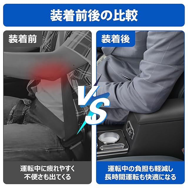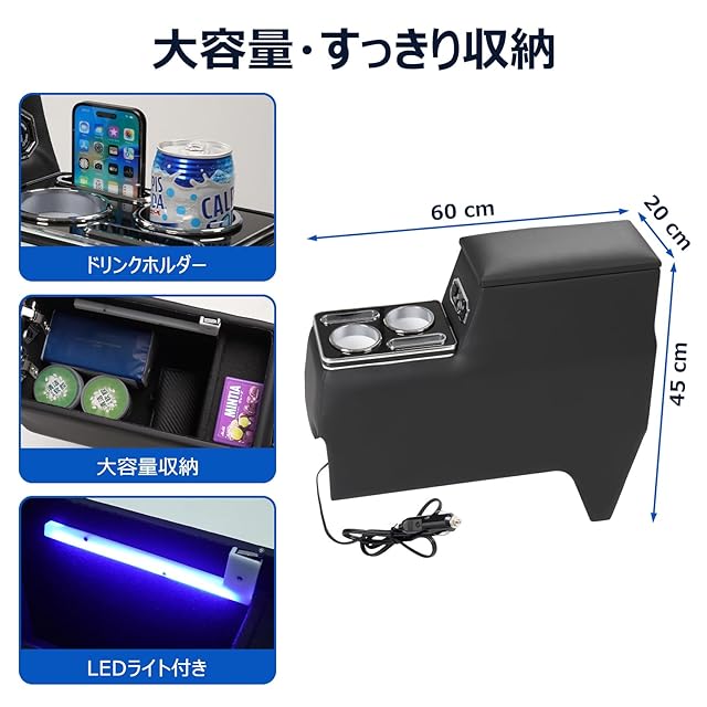 3.【大容量収納】肘掛けとしてだけでなく、鍵、スマホ、コインなどを入れる大容量収納ケースとして利用できます。運転の疲労感を軽減できる同時に、スペースを有効活用し、綺麗に収納できます。また、ドリンクホルダーが2個、携帯ホルダーが2個配置され、スペースとして快適に使えます。