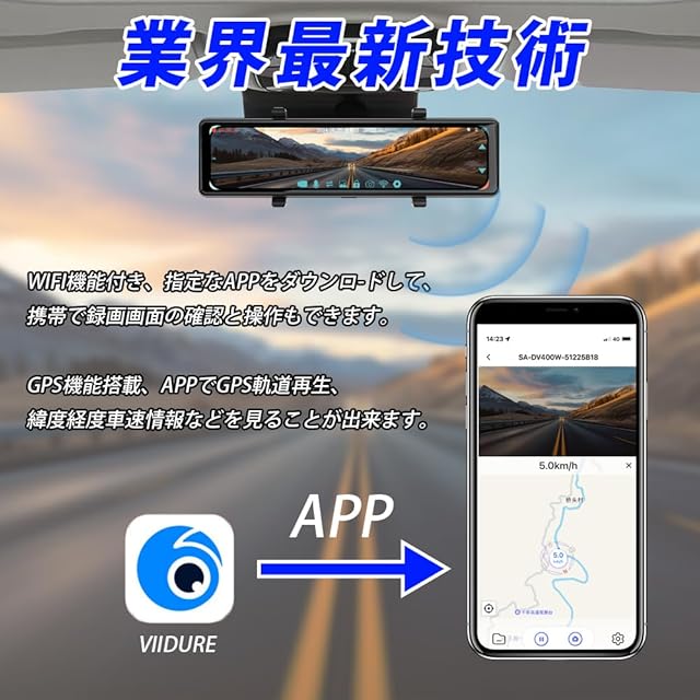 【GPS機能搭載】GPS搭載で、自車の走行速度や位置情報(経緯度)を録画データと共に記録できるため、証拠能力も一段と強化されます。パソコン専用の再生ソフトで走行の足跡、速度、経緯を一目瞭然。万が一、事故を遭えたら、証拠として警察に提出すれば役が立てます。【地デジ対応済】本製品は地デジ、ナビ、TVなどに影響を与えないよう、基盤部、レンズ部、リア電源ケーブルなどノイズ対策を行っています。ノイズを最大程度まで低減します。【東西日本のLED信号機対応】LED信号機の点滅周期に影響されにくいフレームレート 27.5fpsを採用しているので、電源周波数60Hzの西日本エリアでも点灯する信号機を確実に撮影できます。※LEDラインを点滅に撮影することが正常な仕様です。Wifi機能搭載、本体モニターではなく、携帯も録画動画を見れます、更に、携帯のAPPでGPS軌道再生、緯度経度車速情報などを見ることが出来ます。
