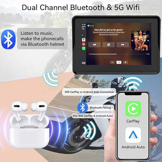 ワイヤレスカープレイ/ワイヤレスAndroidオート/音声コントロールと互換性があります:Bluetooth経由でオートバイのナビゲーションにワイヤレス接続します。 地図ナビゲーション、音楽再生、電話応答などを簡単に実現します。 Siri 音声コントロールを使用すると、運転がより安全かつ便利になります。