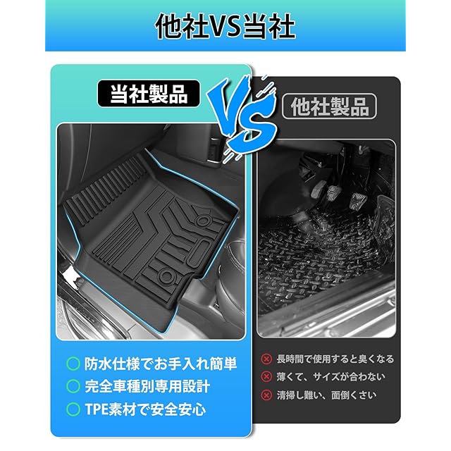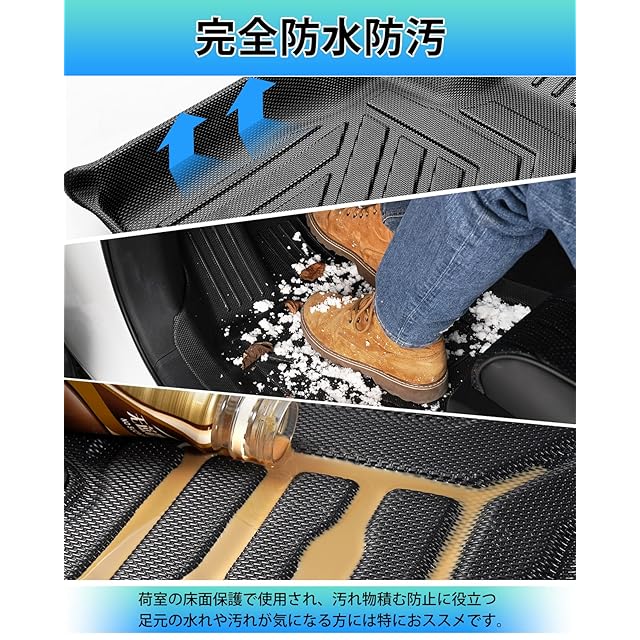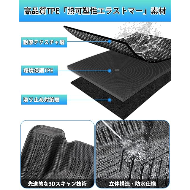 2.【高品質TPE素材】:摩擦性に優れたTPE樹脂素材を採用し、耐汚れと耐摩擦性を実現しました。3D立体構造のお掛けで車が運転している途中でも、飲み物などが溢れっても水やジュースなどはフロアマットの外への侵入を防止します。弊社のマットには防水性&耐摩擦性に優れた、変な匂いも無し、お手入れも楽々!