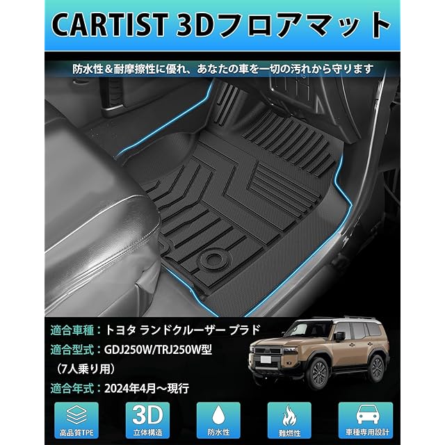 Cartist ランドクルーザー250 に適用 フロアマット 車用 カーマット 7人乗り専用 3Dフロアマット GDJ250W TRJ250W型 2024年4月〜現行 立体 セカンドマット 防水 保護マット 滑り防止 耐汚れ TPE素材 カスタムパーツ 車種専用設計 取付簡単 保護パーツ カー用品 4Pセット