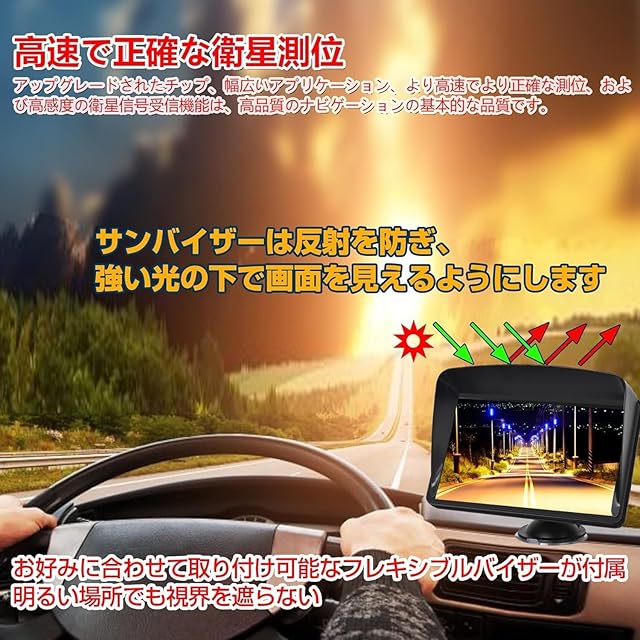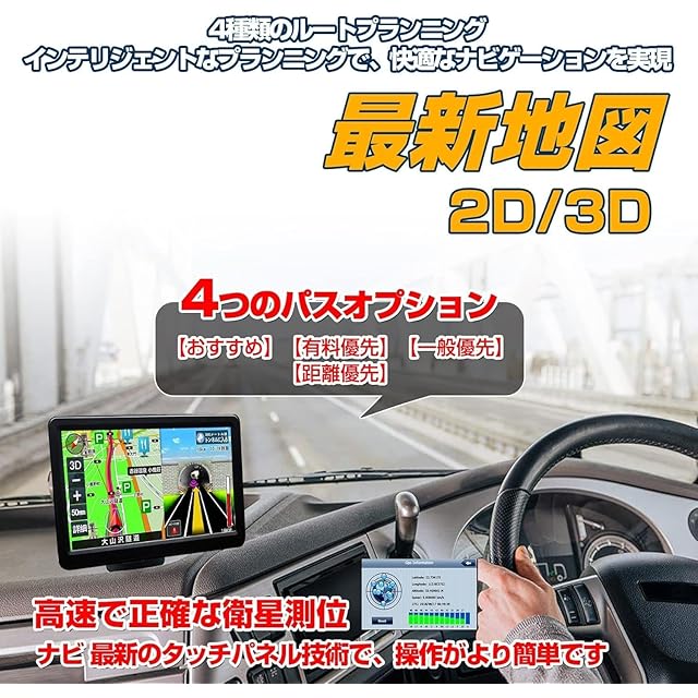 A.2023年度版最新地図搭載,音声案内,一方通行表示対応,7インチ大画面液晶,オフセットなしの正確な測位,車線案内,オービス警告,12V~36V車対応,高精度測位システム,自動ナビゲーションの再計画。この携帯型ナビゲーターは、車の現在位置、目的地までの時間と距離、運転安全警告情報などを表示します。自動ナビゲーションの再計画:計画されたルートに従わなかったり、間違った方向に進んだりした場合、GPSナビゲーションシステムは現在地に基づいて目的地までの新しい最適なルートを再計画します