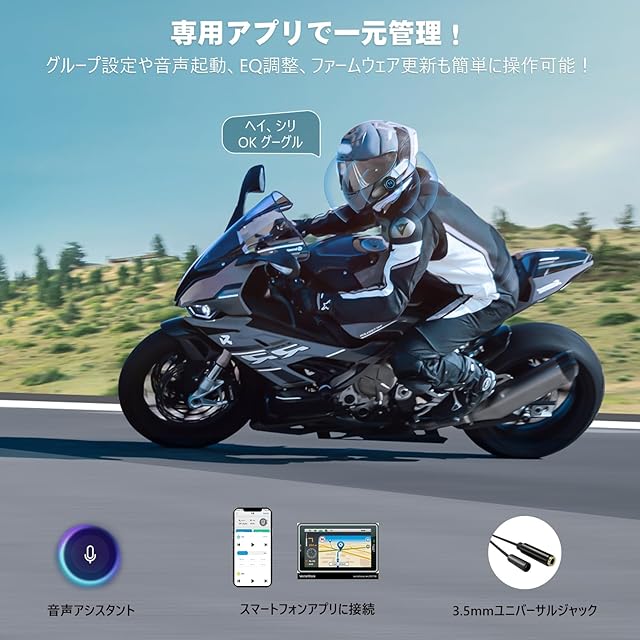 【音楽共有・3段階EQ音效・FM機能】インカムバイク用では、対講中に音楽を共有できるほか、デュアルコイルスピーカーにより低音効果を最適化し、3段階のEQモードでお好みの音質に調整可能。突然の雨や悪天候でも、安心してライディングを続けられます。FMラジオ機能で日本全国の放送局をキャッチ。これにより、ツーリング中もお気に入りのラジオ番組を楽しむことができ、道中のひとときをより充実させることができます