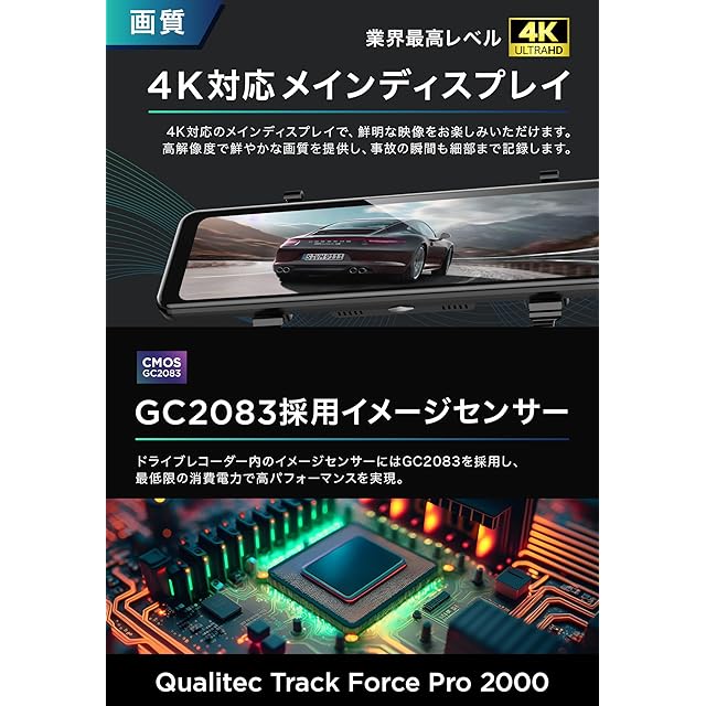Qualitec ドライブレコーダー ミラー型 4K画質 6ヶ月保証 HDR WDR 日本語サポート