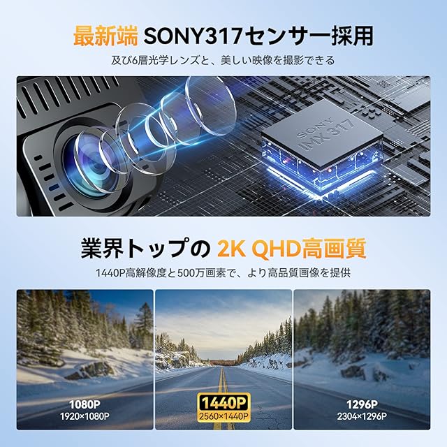 ✅【2022年Amazon US/AUトップ1】高画質前後2カメラドライブレコーダー!フロントカメラには、500万画素の新型Sony 5MPセンサーを搭載し、従来の500万画素フロントとリアカメラよりも鮮明で高画質に録画できます。明るいF1.6のレンズと高品質な7層のガラスレンズにより、歪みが少なく鮮明な映像を実現しました。また、”あおり運転”や”居眠り運転による衝突事故”の決定的瞬間も見逃しません。