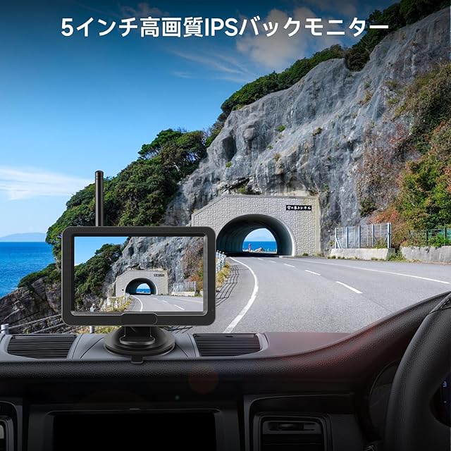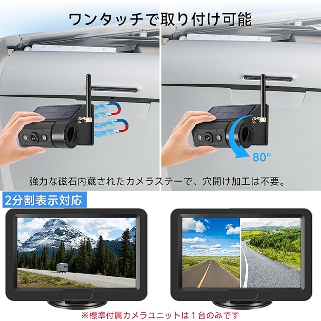 Tonowu バックカメラモニターセット ワイヤレス バックモニター 5インチ 充電式トラックカメラ ソーラーパネル内蔵 HD画質 2分割表示対応 デジタル信号 常時使用可能 ワンタッチで取り付け可能 メーカー保証2年付き