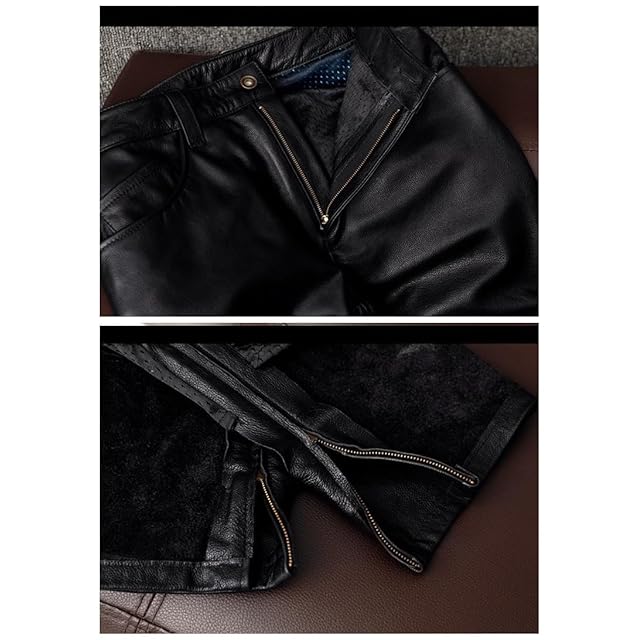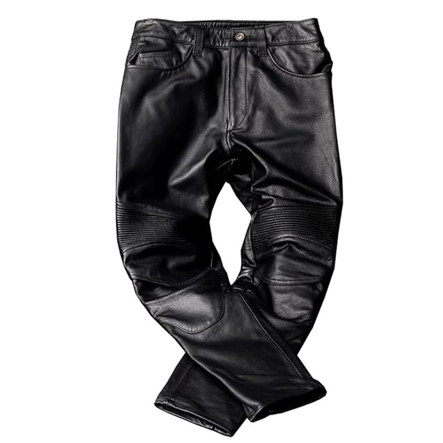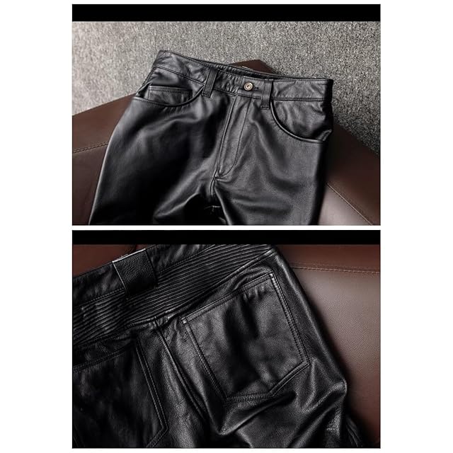 [CHEJI] バイク用レザーパンツ 本革パンツ 牛革パンツ メンズ 革パンツ 革パン バイク用ジーンズ メンズバイクパンツ ライディングパンツ バイク用ジーンズ ストレート ライダースパンツ シンプル 秋冬春 防水防風 (XL, ブラック)