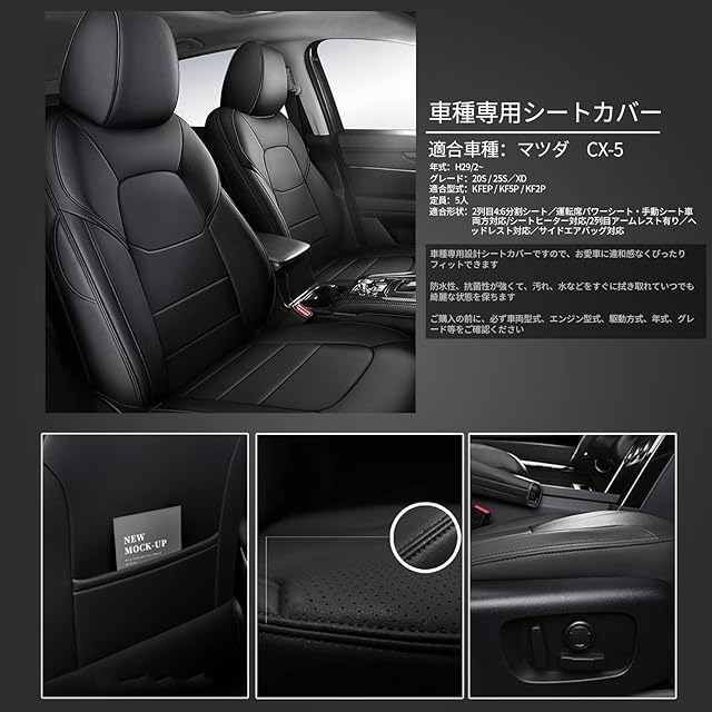 YORKNEIC シートカバー マツダ CX-5適用 KF系 20S/25S/XD 2017年から現行 専用シートカバー 防水シートカバー 合革素材 シート保護カバー シートカバー全席セット ブラック