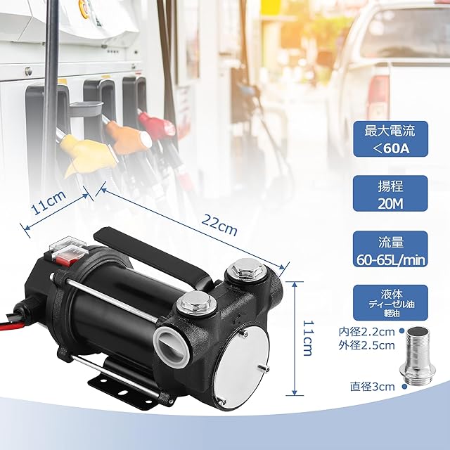 Poafamx 電動オイルポンプ 12V電動ポンプ 軽油 自吸式ポンプ、軽油ポンプ 銅モーター ハイパワー 高速 60-65L/min ポータブル電気ディーゼル油ポンプ ディーゼル 灯油 鉱山機械 エンジニアリング機械 漁船 自動車 小型燃料補給ポイント 日本語取扱説明書付き (60L-12V)