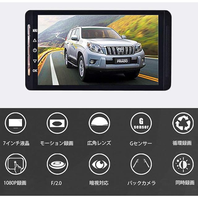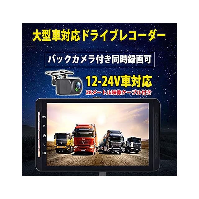 lifepower 12/24V車対応 トラック向けドライブレコーダー 7インチ液晶モニター 暗視仕様 バックカメラ付属 前後カメラ同時記録 1080P Gセンサー 循環録画 大型車対応 25m配線付き