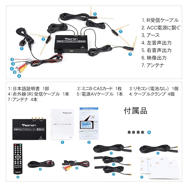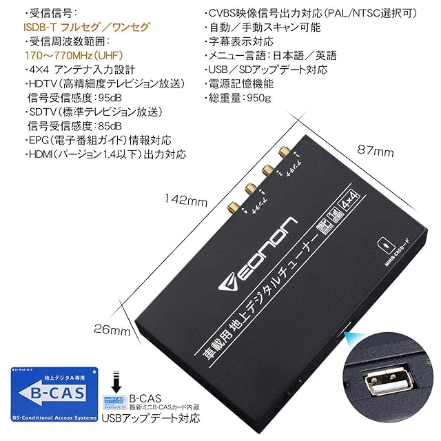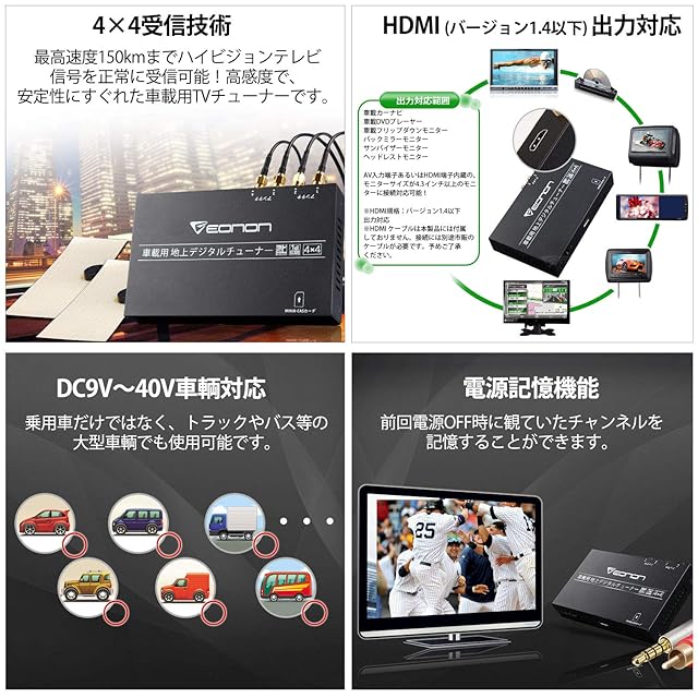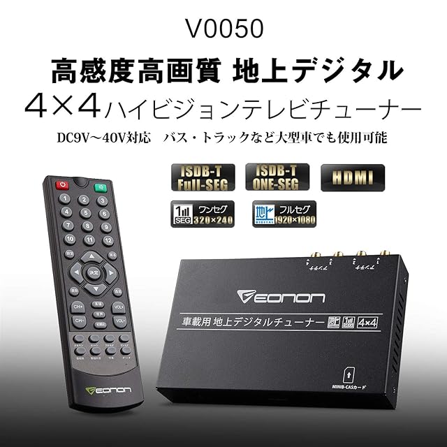 EONON 地上デジチューナー フルセグチューナー ハイビジョンテレビチューナー HDMI対応 車載用 地デジタル (V0050) DC 9V~40V対応 フルセグ/ワンセグ 自動切替 同時受信可能 電源記憶 高性能4×4 高感度 高精細度 地デジ